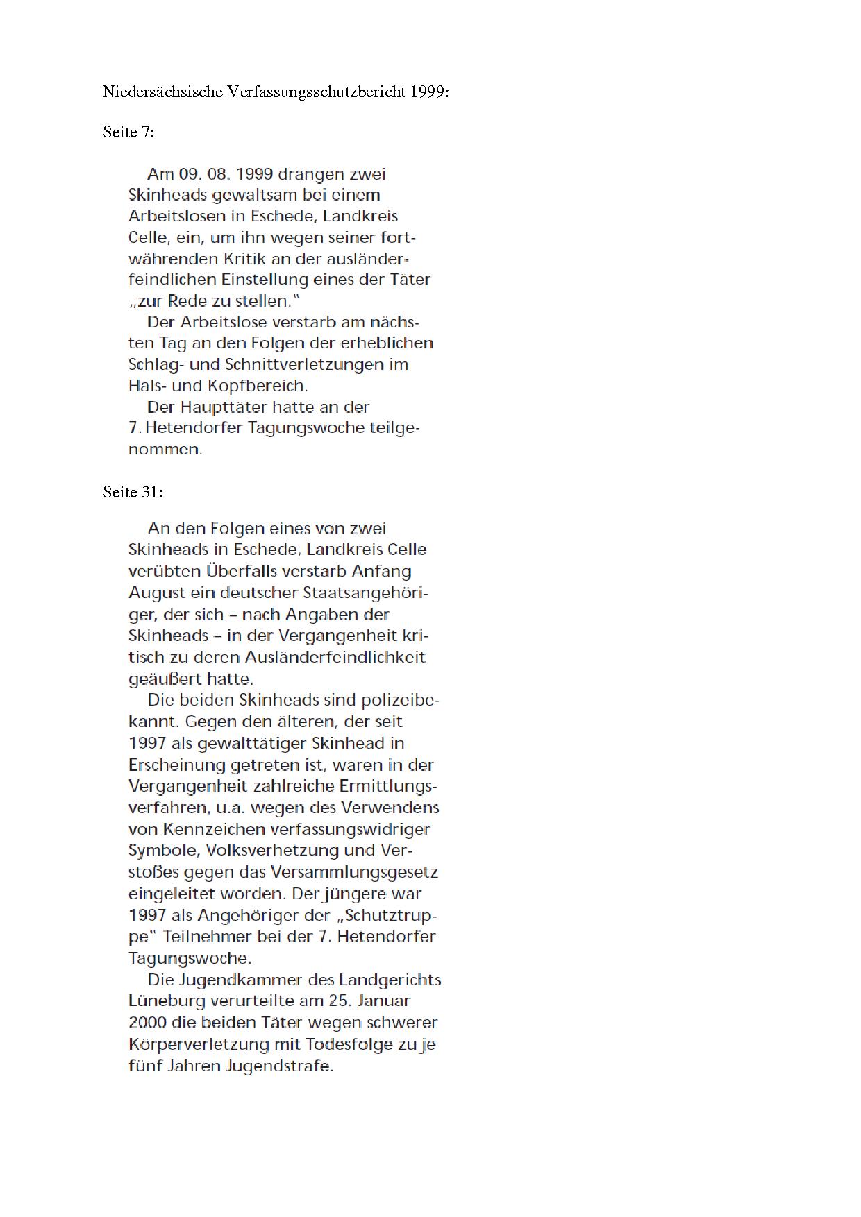 Niedersächsische Verfassungschutzbericht 1999