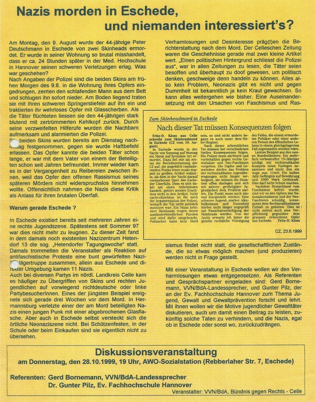 Flugblatt von VVN und Bündnis gegen Rechts, 1999